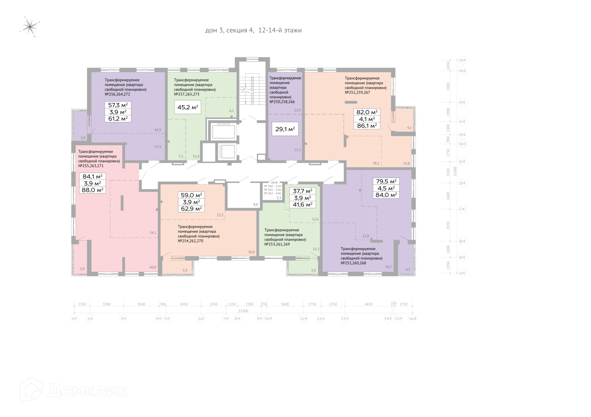 Площади квартир