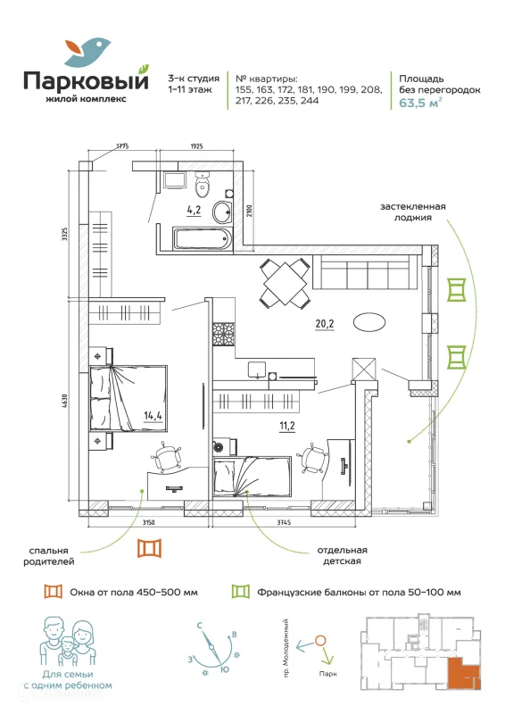 2 комн. квартира в Кемерово в ипотеку от 63 916 руб/месяц