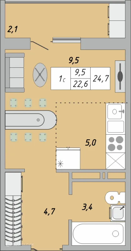 1 комн. квартира в Оренбурге в ипотеку от 24 128 руб/месяц