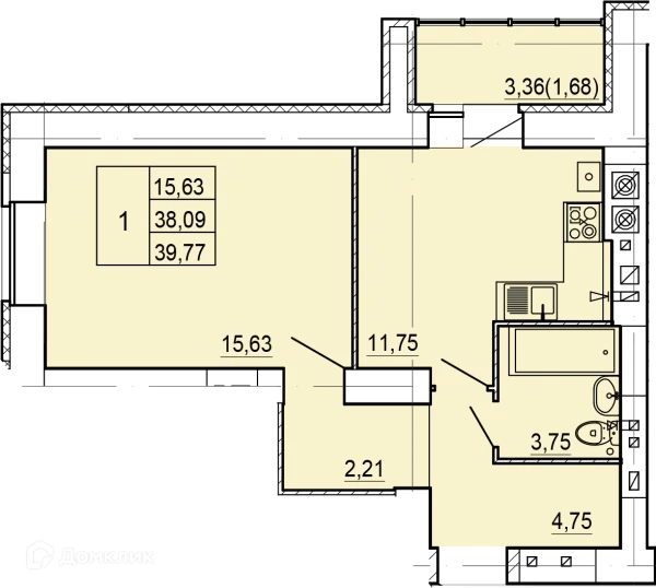 1 комн. квартира в Костроме в ипотеку от 39 785 руб/месяц